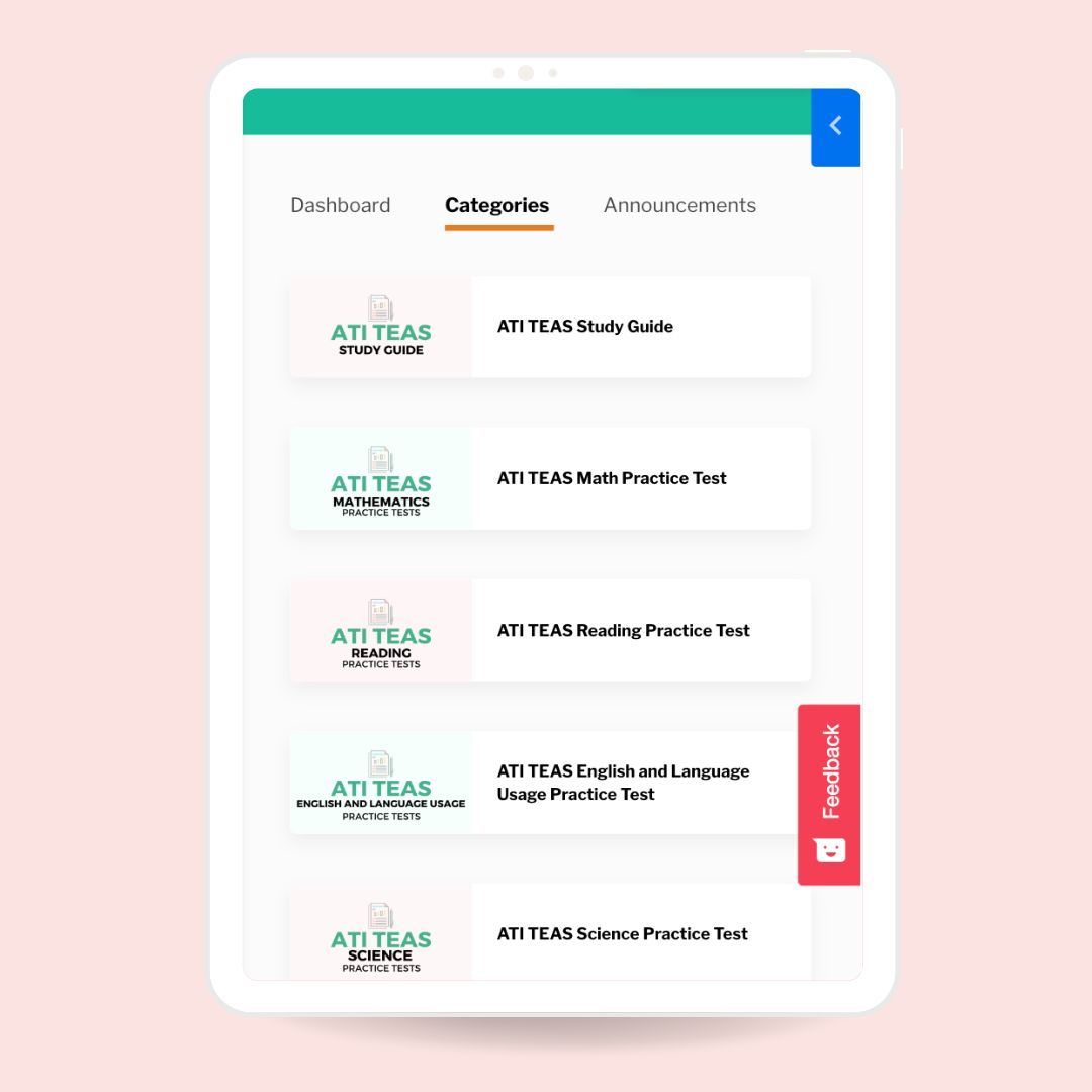 The ATI Test of Essential Academic Skills (TEAS) is divided into four main categories, each of which tests different fundamental skills required for success in a nursing program. The main test categories are explained below with examples.
