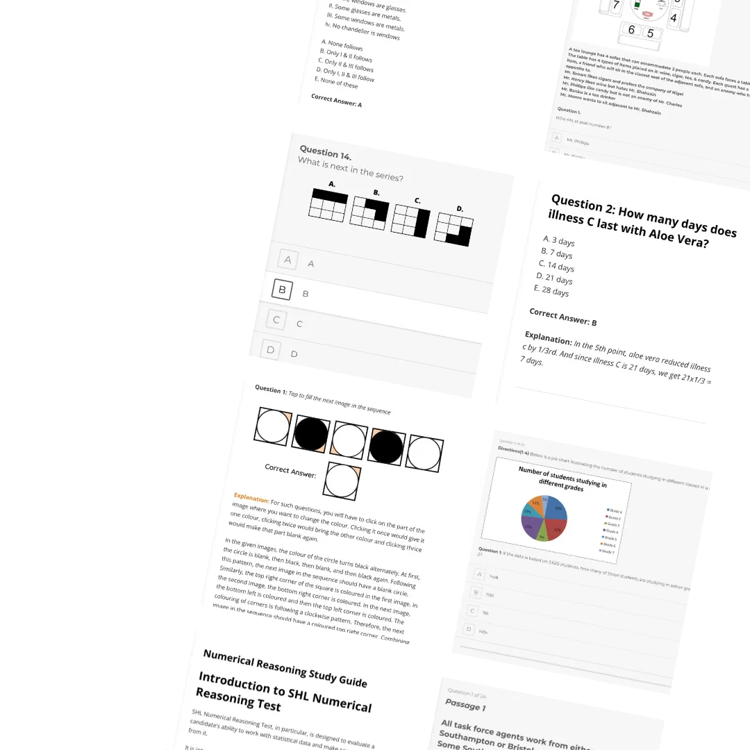 Numerical Reasoning: This test section evaluates the candidate’s capacity to comprehend and interpret numerical data presented in the form of statistical and graphical representations. With several questions to answer for each data set, the assessment presents a number of dual and single data sets.